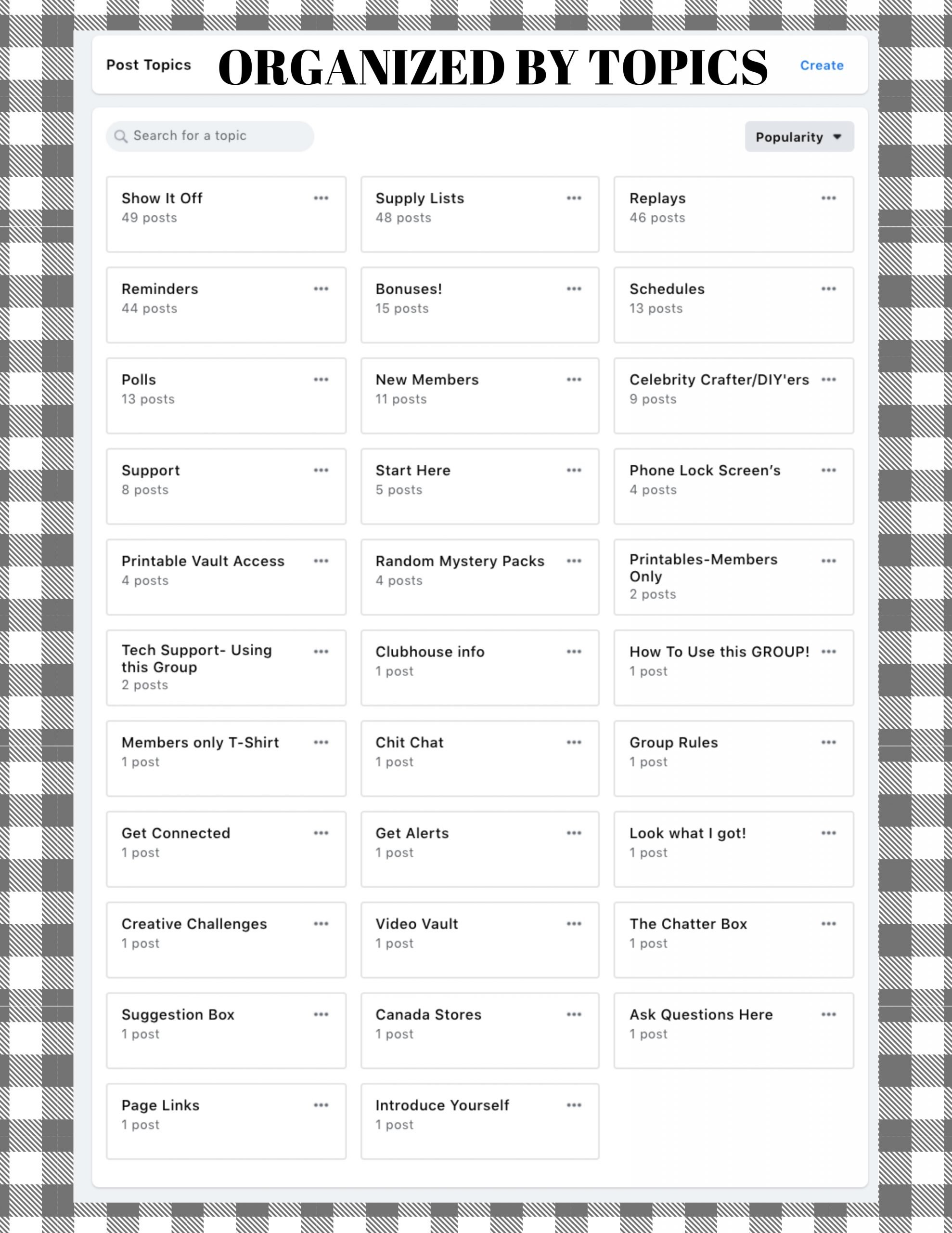 The Creative Haven VIP is unlike any other group you may have been a part of whether it is a free group or a different paid group. I do not allow posts to clutter the discussion. In fact, every post has a place. If you come to the group to post, you need to post to the proper thread. If you or another member posts to the discussion it will be removed and you will be asked to put it in the proper place. This ensures that each member comes to the group to take away what they have purchased access to. And scrolling thousands of random posts is not helpful to our members. The discussion feed will always feature the posts you have purchased access to.