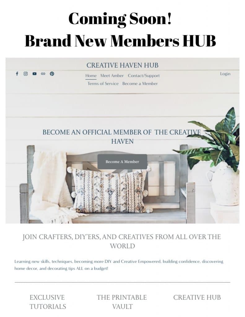 - DIY with ME! You will get at LEAST 2-3 live videos with me including supply lists where it permits (more if time allows me)! Either crafting, doing a larger DIY, painting, building, learning new paint finishes or techniques, sharing helpful tips, decorating advice or Q & A time each week would vary and each month may have a special theme! (It’s gonna be a good time!) We may not always have a DIY craft or project.